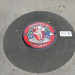 市立図書館の正面玄関前に、今年設置されたエンゼルスの菊池雄星選手のマンホールを発見し、1枚!